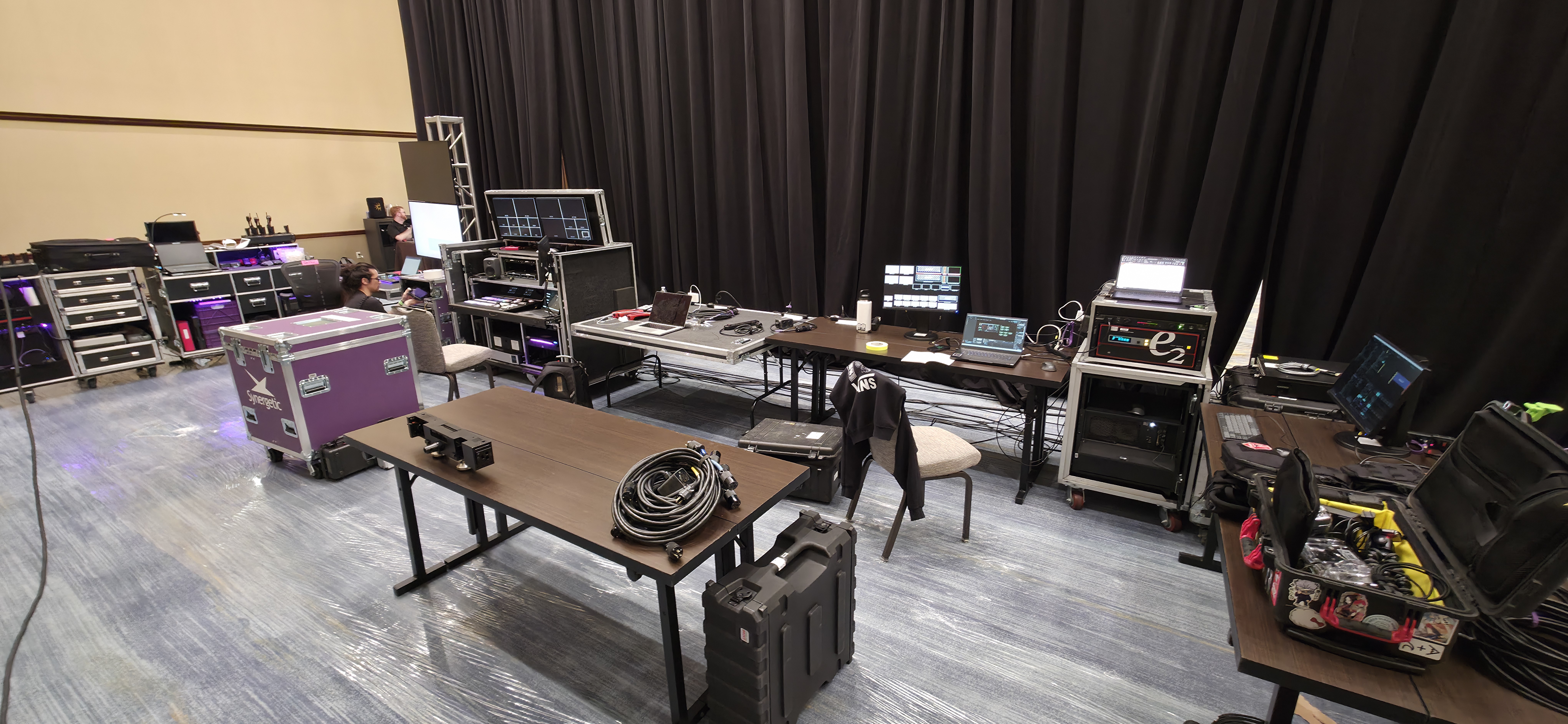 We deployed four 53’ trucks loaded with the necessary gear and brought in a team of 13 from our side. The schedule gave us three days to build the room—including a full day dedicated to rehearsals.